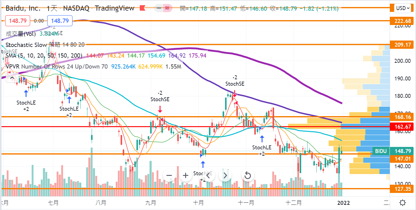 B-百度 09888 現價109.6(-2.00/-1.8%) -美股股價上周四顯著反彈,一口氣重越5天、10天及20天三條平均線,並重上147美元支持線之上,140美元以下正逐步形成新的支持區,如後抽守住20天線,或可進場一注好倉,下周可多加留意。