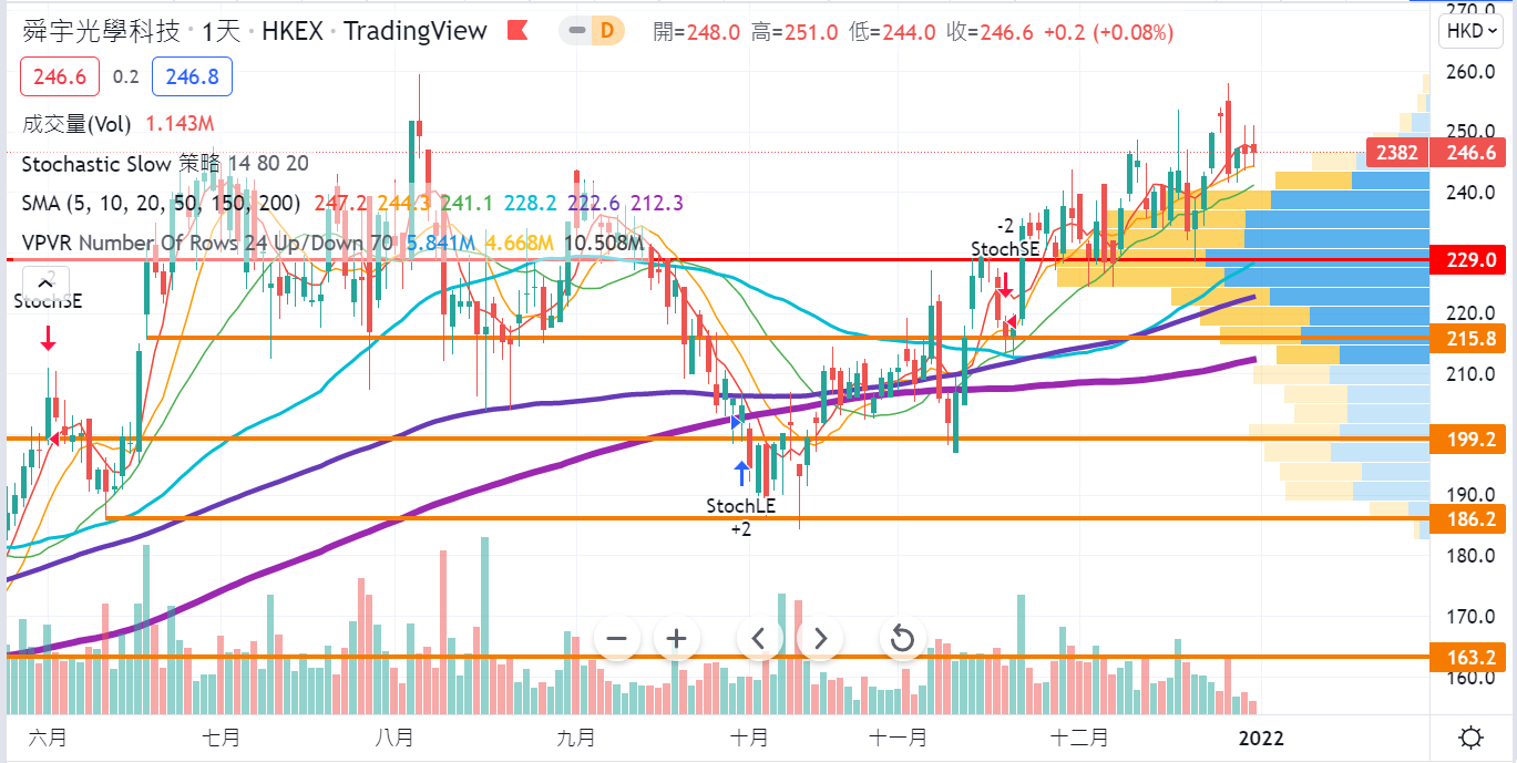 S-舜光 02382 現價61.65(-1.45/-2.3%) -股價近期升至250元後可謂阻力重重,上周一度高見258元,其後又再次抵受不住沽壓後抽落返10天線約245元附近,不過,技術走勢上仍然維持一浪高於一浪,只要守在20天線之上,應可望繼續往上尋頂。