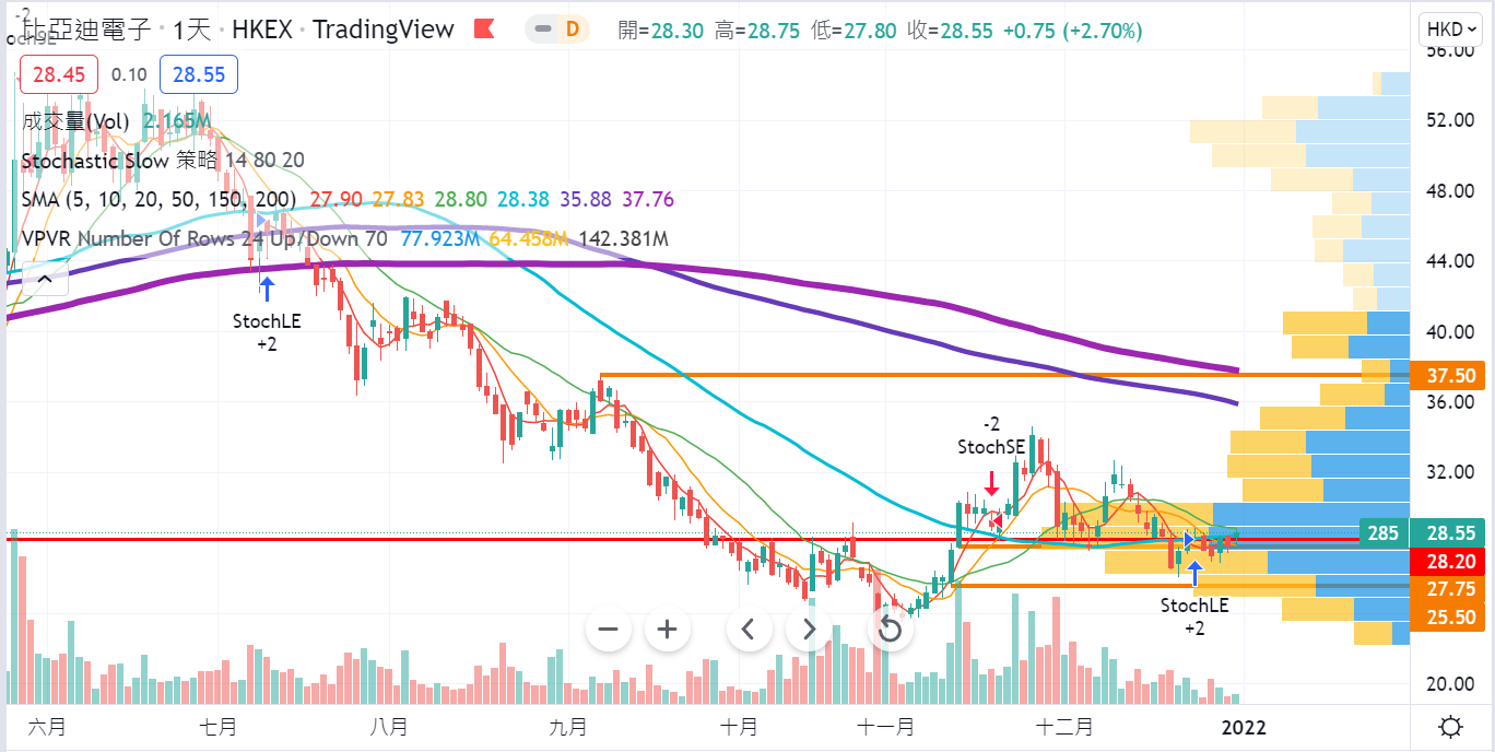 S-比電 00285 現價28.12(-0.620/-2.2%) -股價上周沿著5天及10天線在27.75元支持線附近好淡爭持,#筆者等待著股價於25.5元之上軟著陸後的低位入場機會。